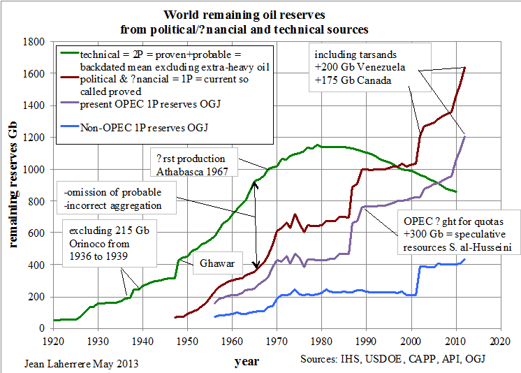 The modelling methodology is the same as in my previous analyses, which started 20 years ago, namely the use of a multi-cycle logistic curve (and its derivatives) to extrapolate the future. The ultimate reserves are those extrapolated from the creaming curve. In a creaming curve, the cumulative backdated 2P reserves (proved plus probable, with the mean value assumed) is plotted versus the cumulative number of discovered fields (or of the new field wildcats). The reserves in the creaming curve incorporate all past revisions and reserve hikes, attributed to the year of original discovery. Very few countries report production and reserves by field: the UK (DECC), Norway (NPD) and the US for the Federal offshore. Therefore, one has to rely on expensive scouting and scout databases, which are not available to the general public. But even then, the scout databases need to be corrected to estimate the actual “2P” reserves.