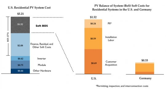 It’s no news to anyone in the solar industry that although module costs have plummeted, soft costs for solar — like permitting, installation, and customer acquisition — have remained high in the U.S. At over 50% of system costs, our soft costs are twice those in Germany.