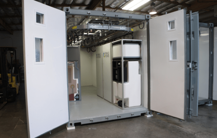 Primus Power makes “flow batteries,” which store energy like the batteries in your laptop do, but which have the electrolyte (the substance that acts as the medium for the charging and discharging) separated out of the battery cell in liquid-filled tanks. The systems use a pump to move the liquid electrolyte over the electrode, which in turn stores energy.