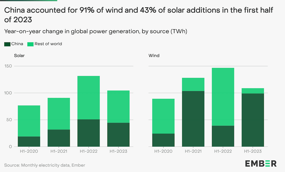 Ember’s global data is from January to June 2023 and covers 78 countries.