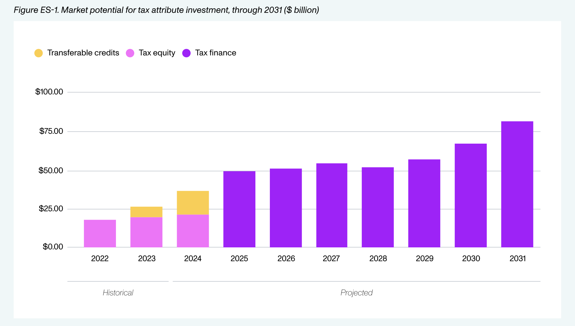 - The market grounding: Treasury guidance went into effect in June of 2023. In the first six months of trading, total deal value of the transferable tax credit market climbed to roughly one-third the value of traditional tax equity.